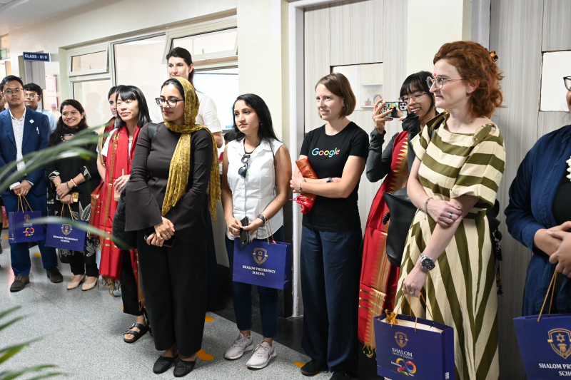 The day began with a traditional Shalom welcome by students, followed by a meet-and-greet session with faculty from all academic streams. A demonstration lesson showcased Shalom’s innovative teaching approach, combining technology, hands-on activities, and real-life applications, earning appreciation from the Google team.