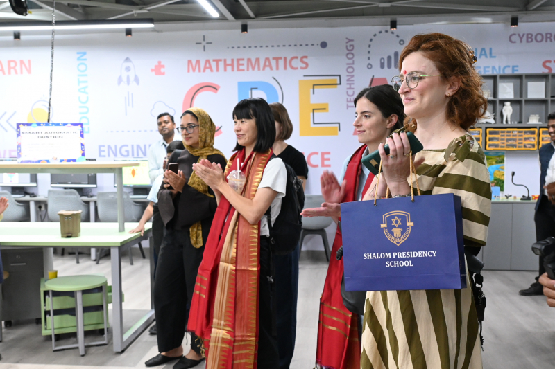 Students impressed the delegation with their use of AI tools like Notebook LM, Google Scholar, and AI in Chrome, sharing insights on AI’s role in exam preparation and critically evaluating its benefits and challenges. The visit also included lighter interactions, leaving memorable impressions of Shalom’s vibrant learning culture.