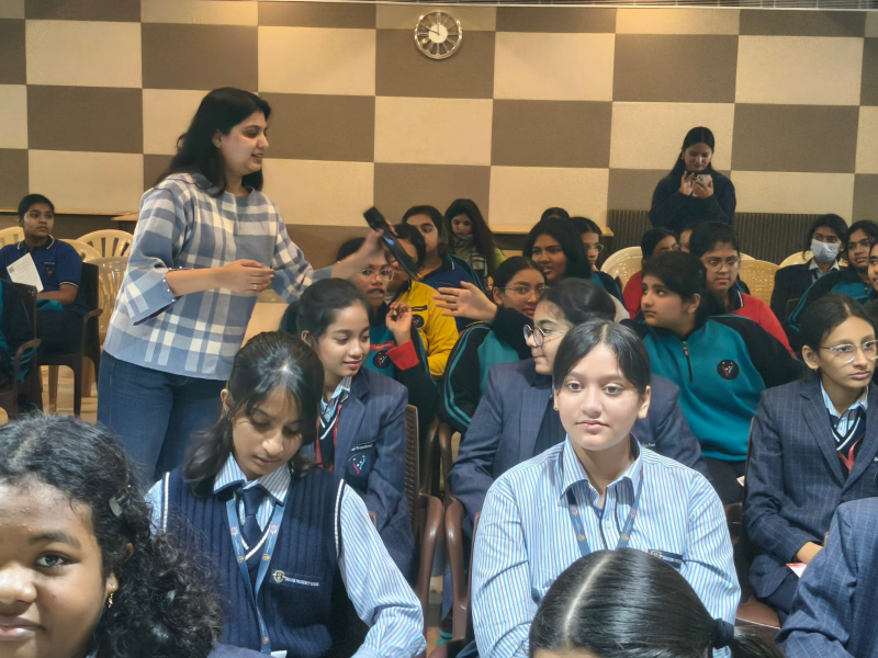 The session opened with an explanation of the link between health and the menstrual cycle, followed by a discussion on puberty and the physical and emotional changes it brings. Ms Ishita helped students understand periods more confidently by debunking myths and misconceptions through scientific facts.