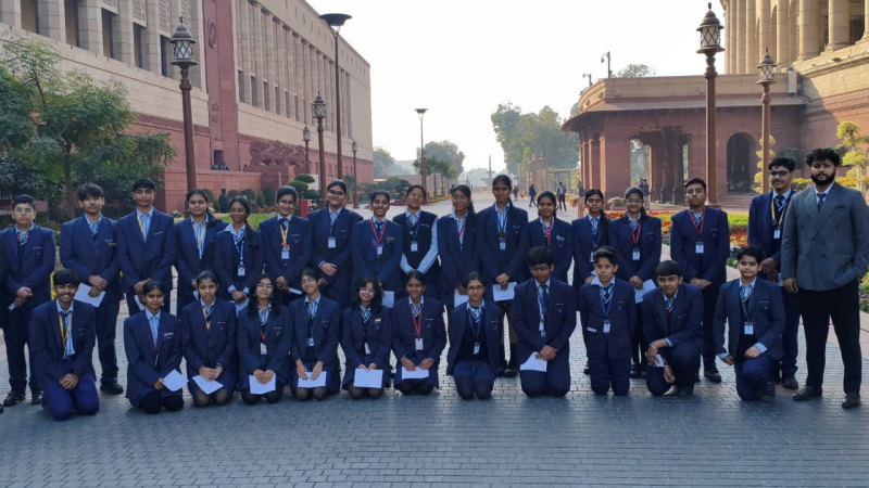 A major highlight of the visit was a group photograph with the Hon’ble Speaker of the Lok Sabha, Shri Om Birla Ji. Students also gained valuable insights into the structure and functioning of the Indian Parliament. The visit proved to be an enriching and inspiring experience, enhancing students’ understanding of civic responsibility, leadership, and democratic governance.