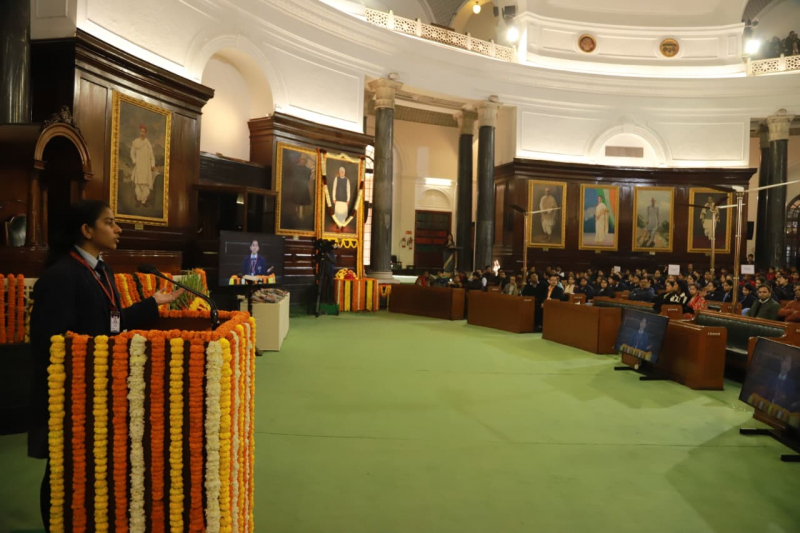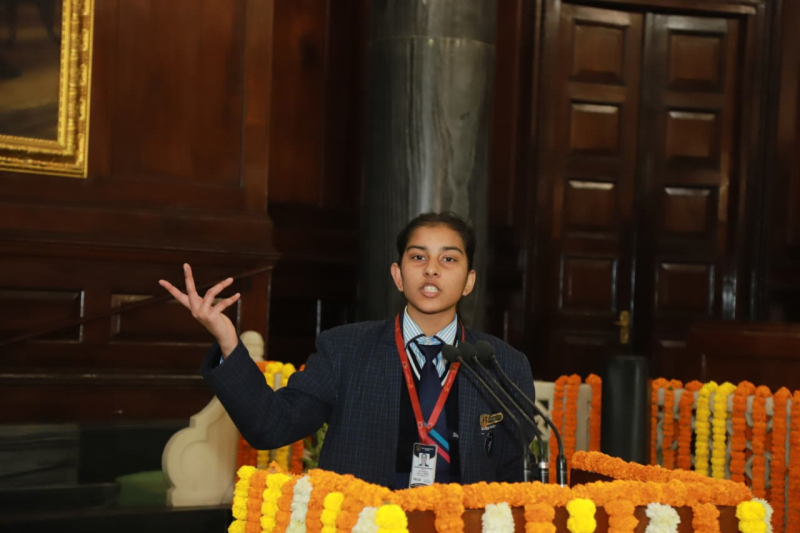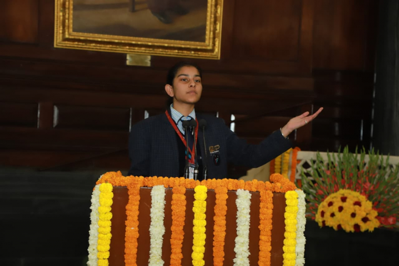 The visit was conducted under a Youth Affairs programme, where students from various states participated, exchanged ideas, and engaged in meaningful discussions. Two students from SGOS, Saanchi Sachin Behede (Shalom Presidency School) and Arushi (Shalom Hills International School), delivered well-articulated speeches on the life and contributions of Shri Atal Bihari Vajpayee Ji before an audience comprising students from over ten schools and colleges, along with honoured dignitaries.