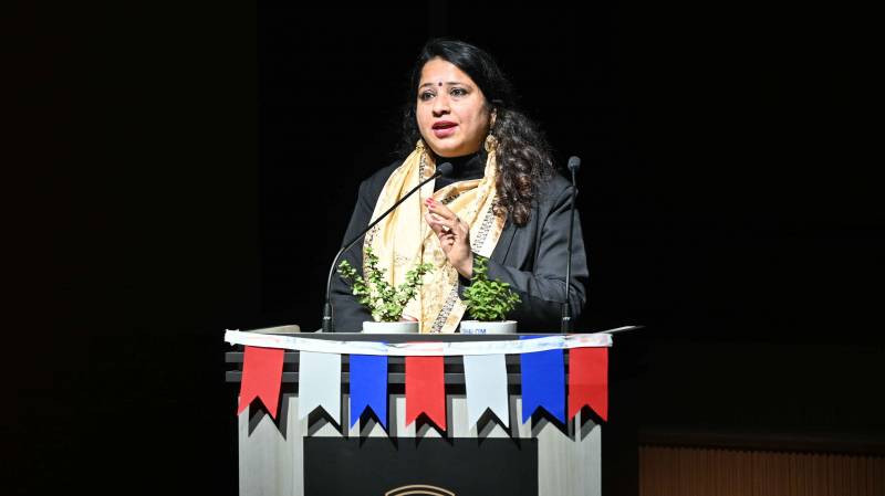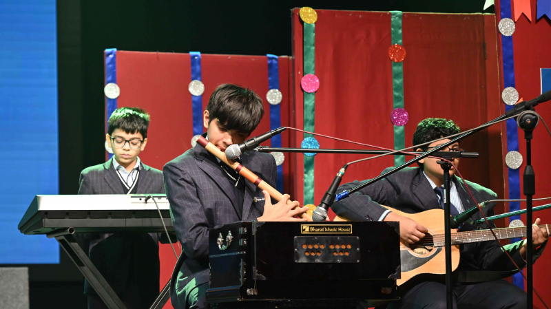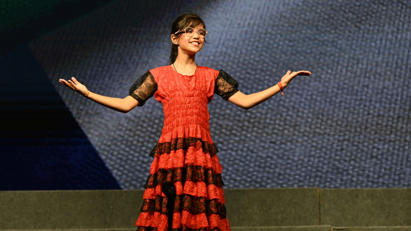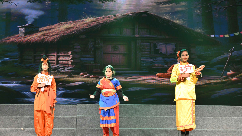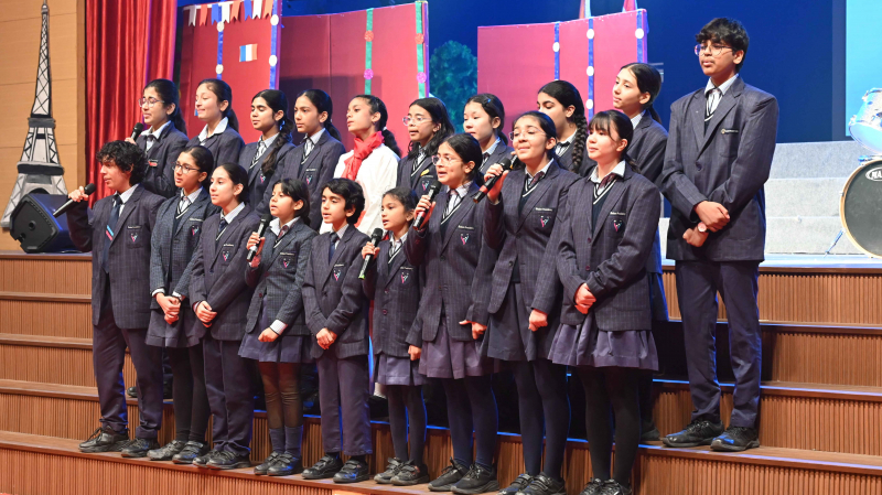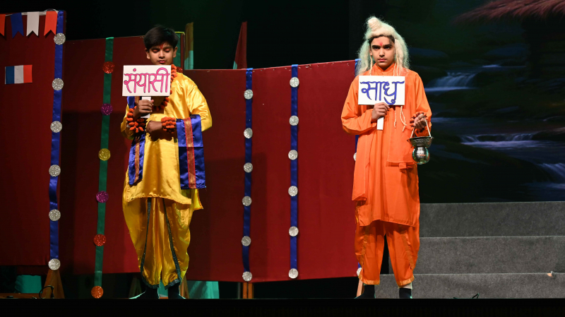 The programme commenced with a soulful prayer and shloka, followed by the Ādhyātmik Udghāṭan, which set a serene and positive tone for the event. A well-articulated Bilingual Speech highlighted the significance of learning French and Sanskrit in today’s global yet value-driven world. Energetic songs and graceful dance performances added vibrancy and cultural flavour to the programme.