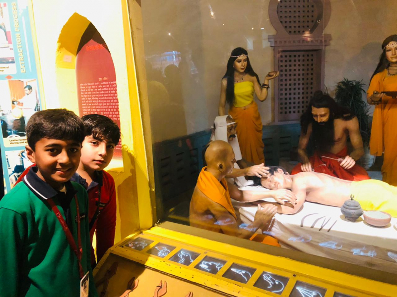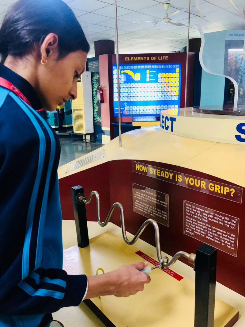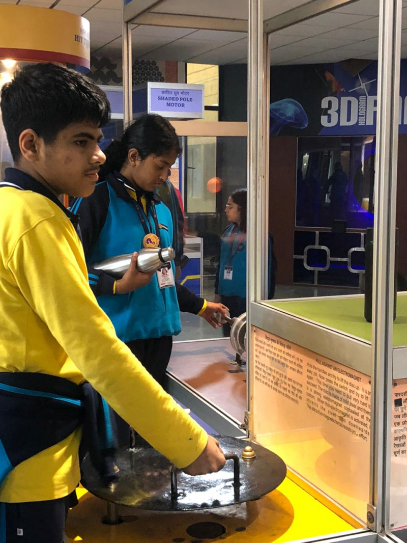 During the visit, students explored multiple galleries related to Science, Mathematics, History, and Geography. The working models and hands-on exhibits effectively demonstrated complex concepts such as momentum, density, reflex action, magnetic fields, and the structure of DNA in a simplified and engaging manner. Key attractions, including the Ancient Indian Chemical Laboratory, Cotton Textile Gallery, Mirror Maze, Cockpit Simulator, and the Nine Pillars of Digital India, generated keen interest among the students. The visit fostered curiosity, encouraged inquiry-based learning, and helped students relate theoretical knowledge to real-life applications, making the experience both enriching and memorable.