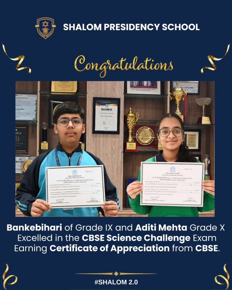 Shalom Presidency School actively participated in the CBSE Science Challenge 2025–26, an initiative aimed at fostering scientific temper, environmental awareness, and sustainable thinking among students of Classes VIII to X. The challenge was conducted in two stages.