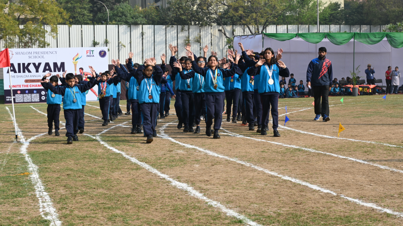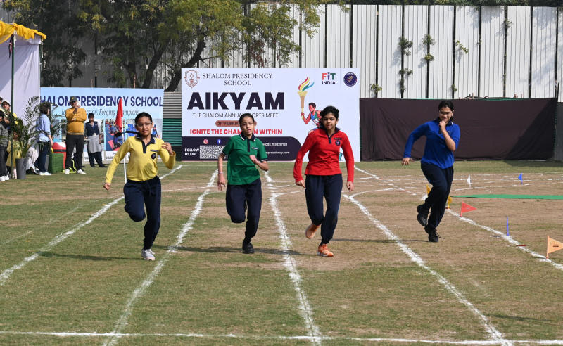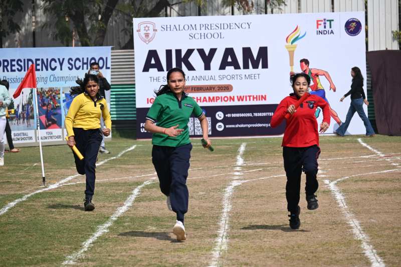 Shalom Presidency School proudly hosted AIKYAM – The Shalom Annual Sports Meet 2026 on Saturday, 21 February 2026, at the school ground. The four-hour sporting extravaganza unfolded as a vibrant celebration of athleticism, discipline, and the true spirit of sportsmanship.