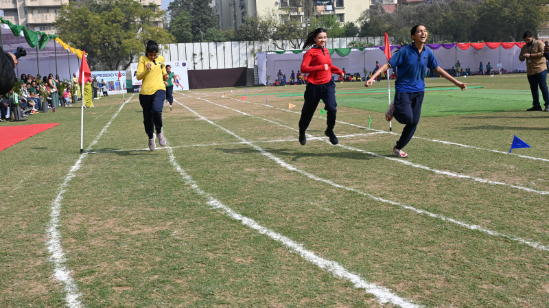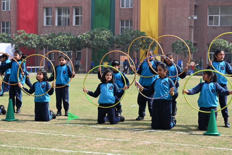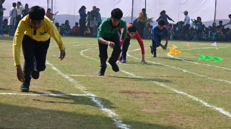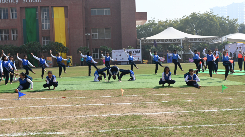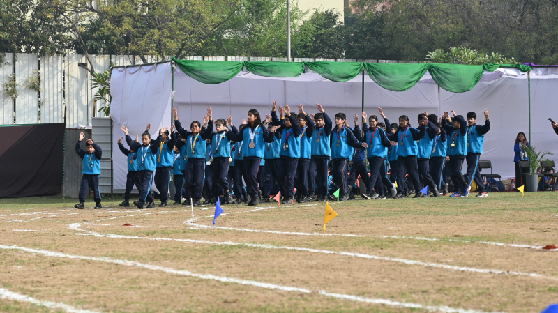 The sporting events featured recreational races for Grades I and II, competitive sprint events for senior grades, along with hurdles and relay races that showcased speed, agility, and teamwork. Graceful Rhythmic Yoga performances and vibrant mass demonstrations by students added colour and elegance to the programme. The meeting concluded with a grand Victory Ceremony celebrating the achievements of the participants, followed by parent engagement activities, the formal declaration of closure, the Vote of Thanks, and the National Anthem.